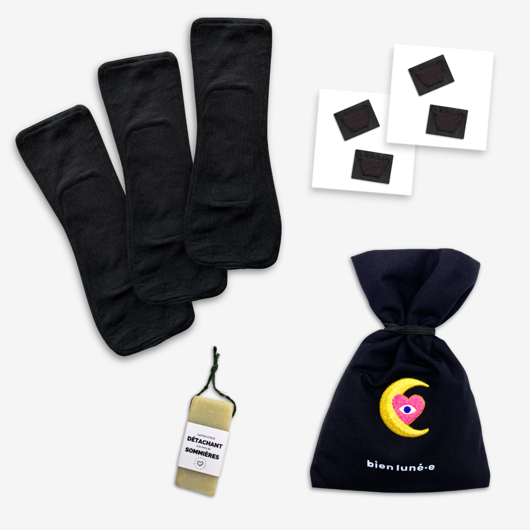 Nos serviettes absorbent l'équivalent de 1 à 4 serviettes jetables selon le modèle. Flux légers, moyens ou abondants : il y a une serviette Bien Luné.e pour chaque jour de votre cycle.